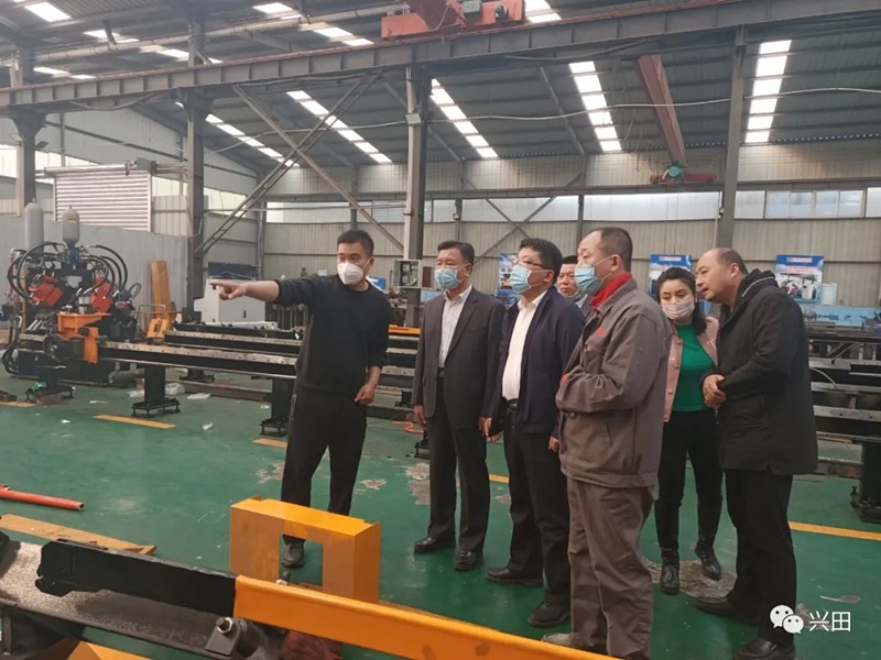爾后,平陰縣領(lǐng)導(dǎo)一行來到公司工廠生產(chǎn)車間,現(xiàn)場考察了工廠的復(fù)工復(fù)產(chǎn)情況、員工到崗情況、技術(shù)研發(fā)情況和口罩機(jī)的研發(fā)生產(chǎn)情況。