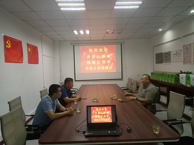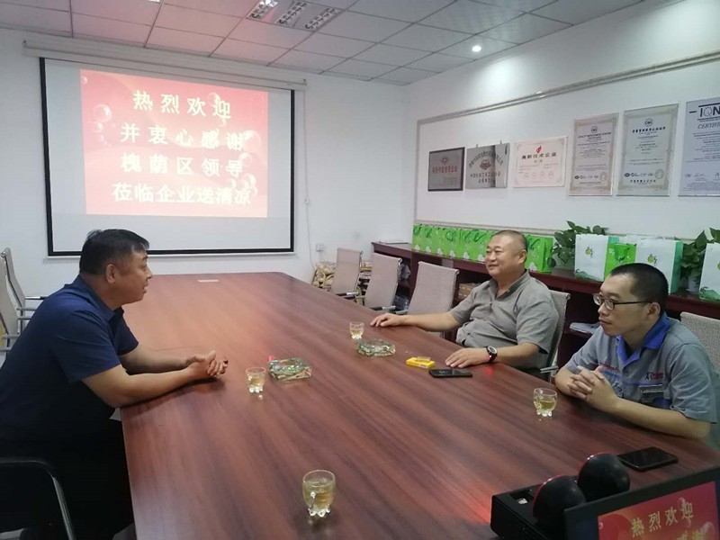 8月19日上午,受槐蔭區(qū)領(lǐng)導(dǎo)委托,槐蔭區(qū)工信局副局長(zhǎng)惠健一行蒞臨公司進(jìn)行夏季送清涼活動(dòng)。公司董事長(zhǎng)徐福厚、董事會(huì)秘書(shū)兼辦公室主任王德華熱情接待了惠健副局長(zhǎng)一行。